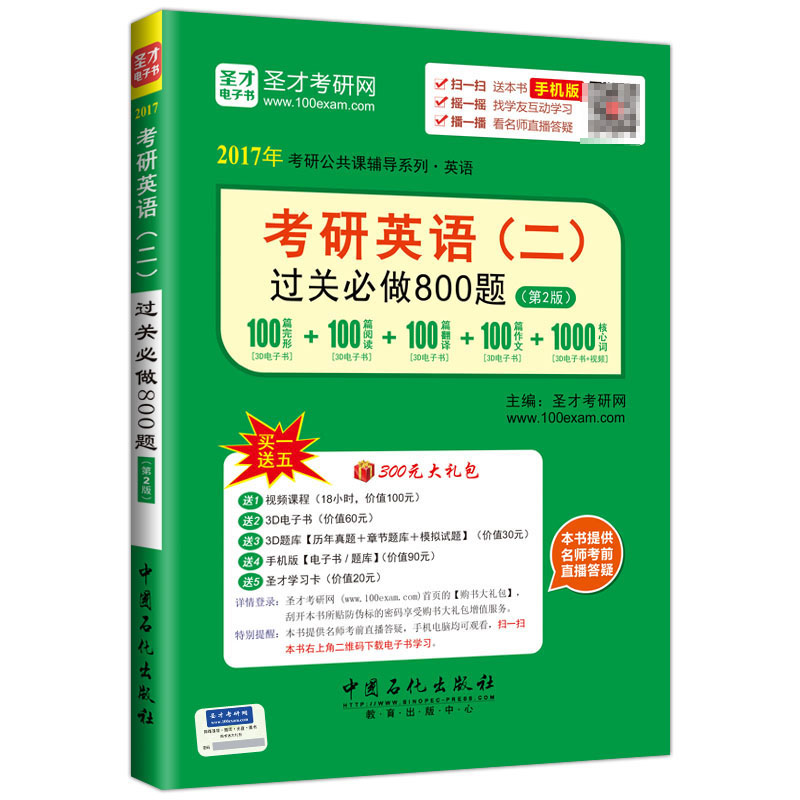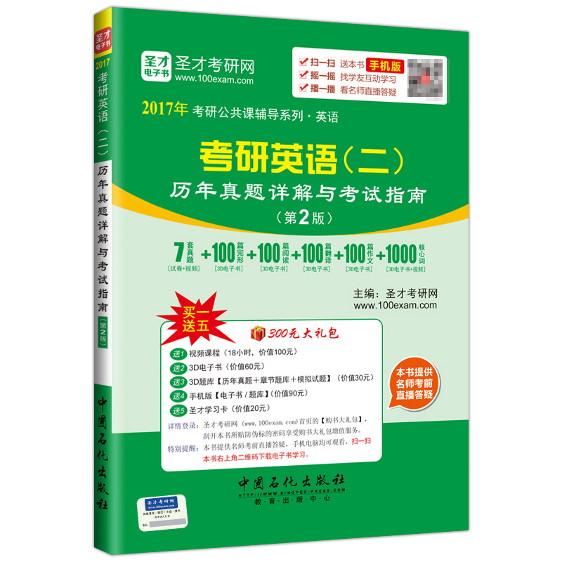 2017年考研公共课英语辅导系列正在预售,购买本系列图书享受圣才大礼包增值服务,视频课程、3D电子书、3D题库【历年真题+章节习题、模拟试题】、20元圣才学习卡,刮开所购图书封面伪标的密码,进入圣才大礼包兑换入口进行兑换,即可享用圣才图书大礼包。
